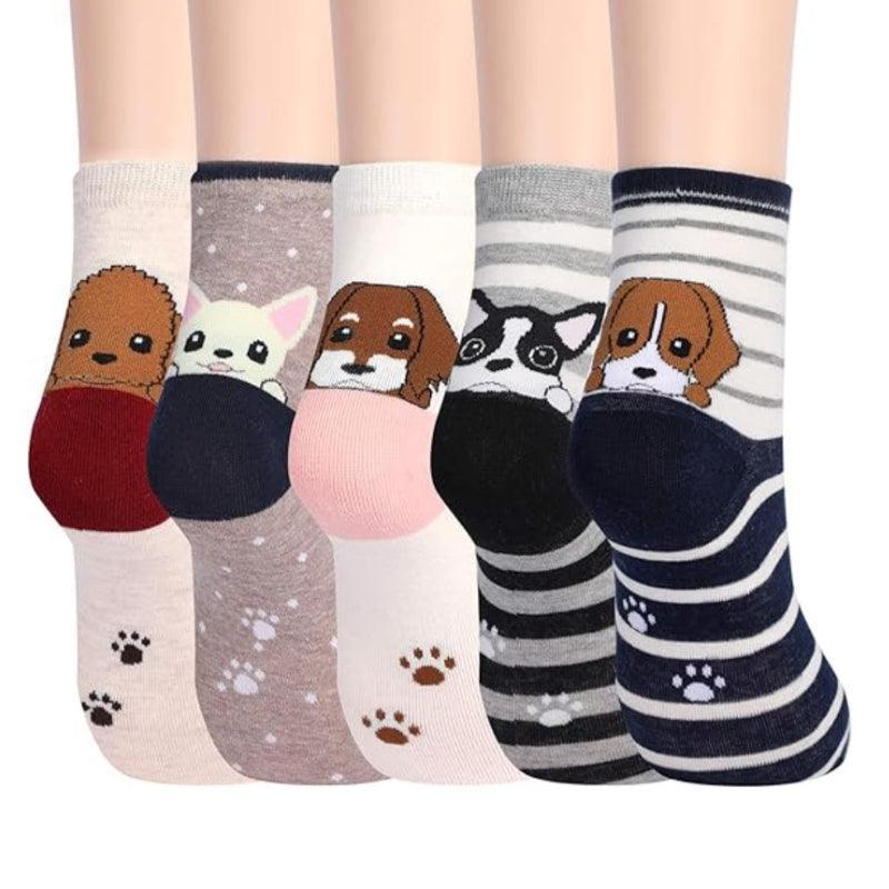 Cartoon Animal Printed Socks – Pack of 5 for Fun and Comfort