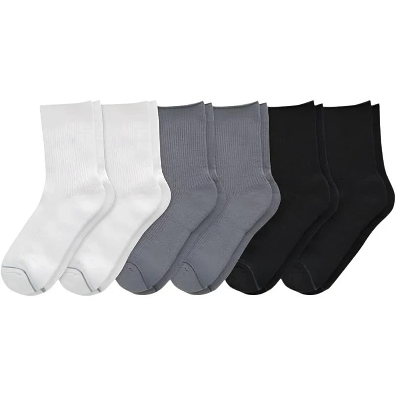Whether you're slipping them into boots or pairing with lounge shoes, these ribbed crew socks hold their shape while moving with ease. The pack includes neutral color socks suitable for various outfits and environments. From casual wear to more polished footwear pairings, this set supports your routine with a straightforward approach to comfort and style.