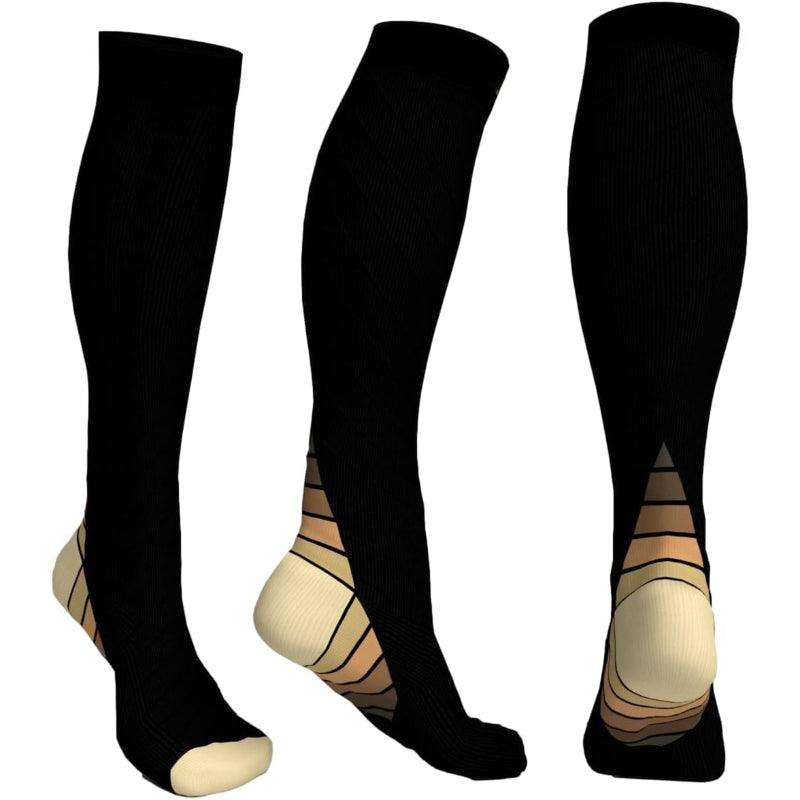 These socks feature a precise compression level of 20-30 mmHg. As 20-30 mmHg Support Socks, they provide firm pressure at the ankle, gradually easing as it moves up the leg.