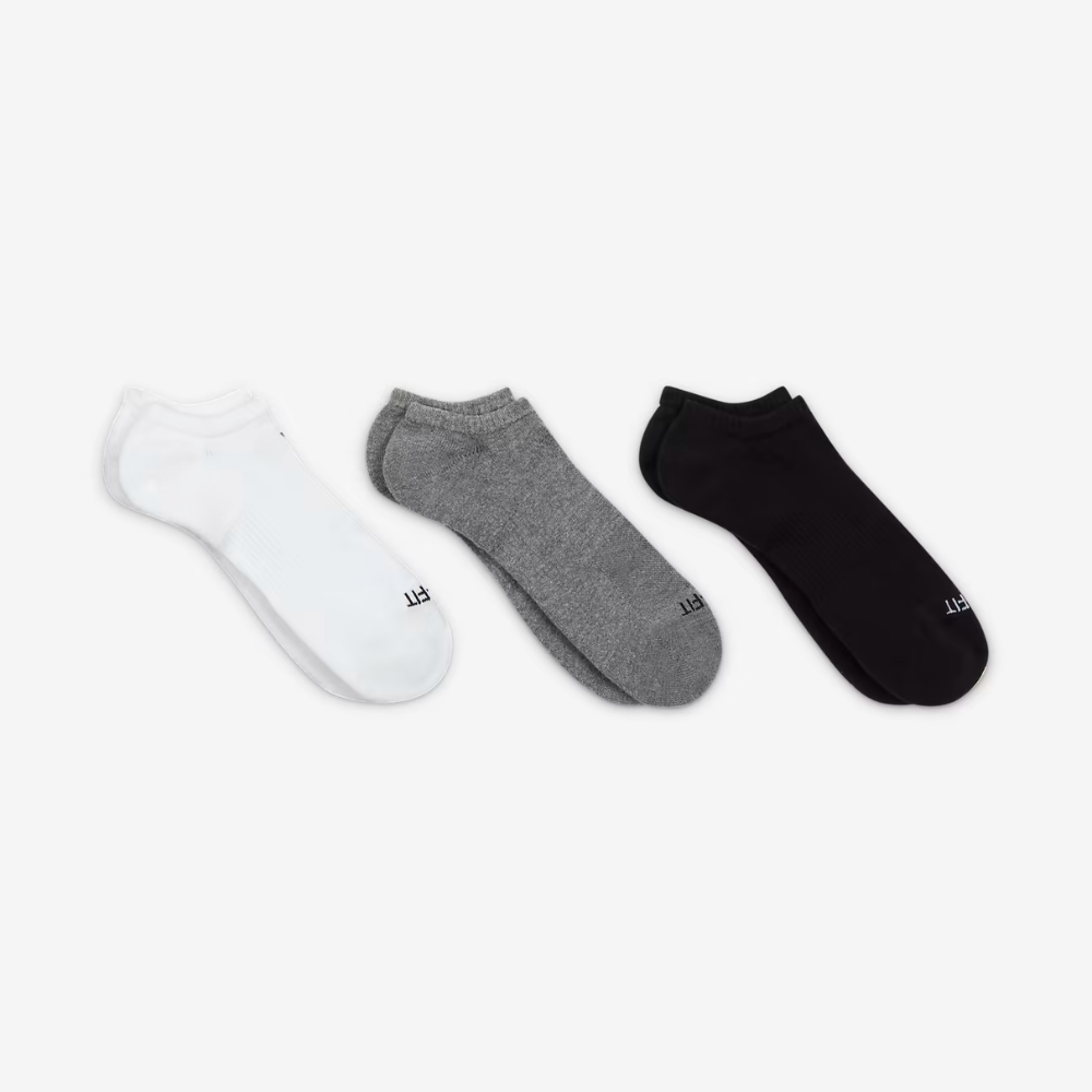 The Men Everyday Cushion Socks are a well-balanced solution for active individuals who need both performance and comfort from their gear. With a low-cut design, moisture control, padded zones, and arch support, they offer the essential features that athletes and everyday movers can depend on. Built from a suitable cotton blend and backed by Dri-FIT technology, these socks support your workout while staying easy to wear and care for. Whether you're in motion or recovering between sets, this set of three brings comfort, structure, and performance to your everyday routine.