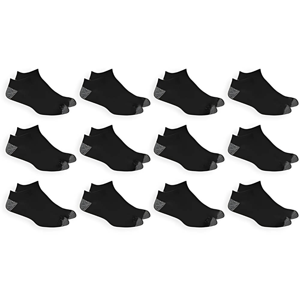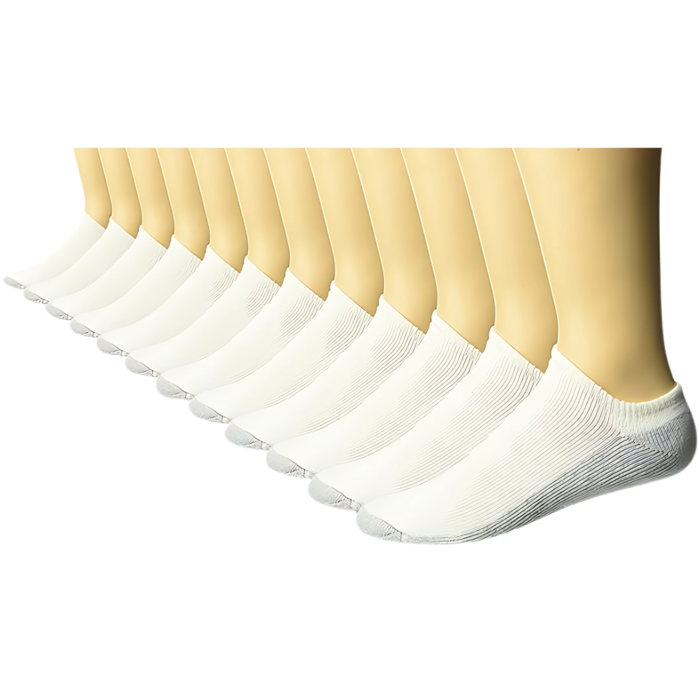 Each 12-pack includes socks built for both athletic and casual use, with a cushioned sole and a stretch fit that adapts to your needs. The no-show profile stays hidden under shoes, while reinforced toes and heels help the socks keep their shape. These comfortable men socks combine practical features with a classic look, making them a great addition to any drawer.