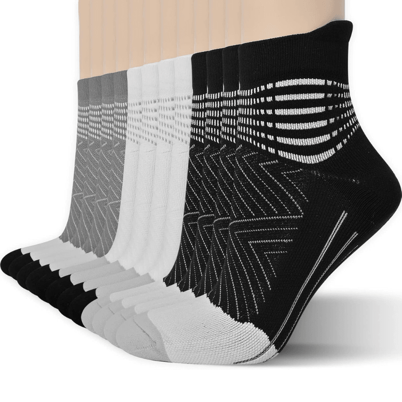 Whether you're powering through your workout or managing a busy day on your feet, the Performance Ankle Support Socks keep you steady, dry, and focused. With their sleek design, reinforced support zones, and smart moisture-wicking capabilities, these socks are a reliable companion for any routine.